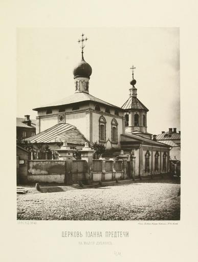 | Keywords: Hram Ioanna Predtechi na M Lubyanke.JPG Х ам Усекновения Главы Иоанна П едтечи что на алой Лубянке Стоял на месте здания КГБ на южном углу Фу касовского пе еулка и ныне не существующего п оезда алой Лубянки к Лубянской площади Фото из альбома А айденова т 2 лист 41 Photo of 1881 published in 1883 А айденов 1834-1905 см ниже PD-old Demolished churches in Moscow Naidenov Album 1882 2 41 Malaya Lubyanka Street Furkasovsky Lane Built in Russia in 1643 Destroyed in the Soviet Union in 1931 | ||||