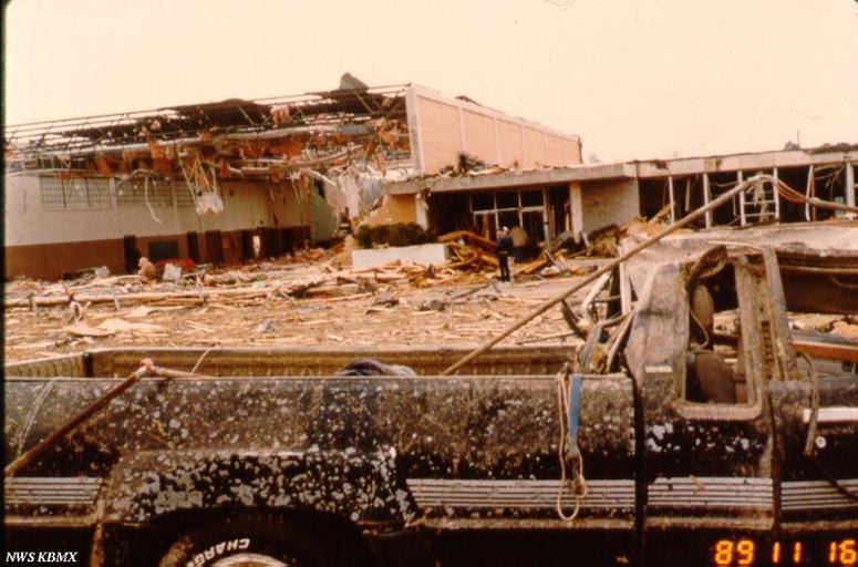 Keywords: Hsv damage 05.jpg en Holy Spirit Catholic Church suffered severe damage from the November 15 1989 tornado to strike Huntsville Alabama photographed by NWS Birmingham during their storm survey 1989-11-16 http //www srh noaa gov/images/bmx/significant_events/1989/11_15/graphics/ C S;O D National Weather Service Birmingham Alabama office other versions PD-USGov 1989 Huntsville Tornado |