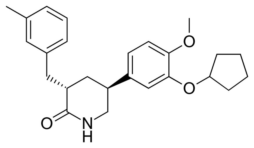 Keywords: HT-0712.svg Chemical structure of HT-0712 Own 15 07 21 February 2015 UTC Ed Edgar181 valid svg Cyclopentane derivatives Delta-lactams Dimethoxybenzenes Nootropics PDE4 inhibitors Phenol ethers Piperidones Toluenes