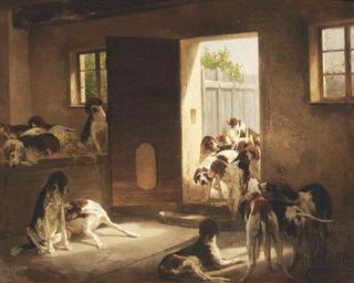 | Keywords: Huber, Carl Rudolf - Hundemeute. Jagdhunde im Stall.jpg  Hundemeute Jagdhunde im Stall oil canvas 64 x 79 cm private collection Location signature http //www artnet de/Artists/LotDetailPage aspx lot_id 3B1FB0D280C7E162FA6D6CCAF633FF7B Other versions PD-old-100 Carl Rudolf Huber Hundemeute 19th-century paintings of dogs 19th-century paintings in unidentified private collections 19th-century oil on canvas paintings Paintings not categorised by year Oil paintings of animals 19th-century paintings of animals Hunting dogs in art Spaniels in art Oil paintings of dogs Uploads by Mattes from external sources |