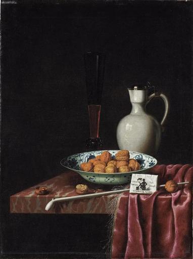 | Keywords: Hubert van Ravesteyn - Glass, flask, walnuts in a bowl, tobacco and pipe on a stone slab - Art Gallery of Ontario.jpg artwork Creator Hubert van Ravesteyn Leaning against the pipe is a tobacco packet containing Virginia tobacco decorated with a picture of an American Indian smoking a peace pipe and the words Anno 1671 / Orien-Tael / Verinis Taback / tot Dordrecht by Marschael 1671 Oil on canvas cm 66 49 5 Institution Art Gallery of Ontario accession number http //artgalleryofontario tumblr com/post/56601721988/still-life-with-walnuts-tobacco-and-wine-1671 Art Gallery of Ontario PD-old-100 DEFAULTSORT Ravesteyn Still Life with Walnuts Tobacco and Wine Hubert van Ravesteyn Paintings in the Art Gallery of Ontario Walnuts in art |