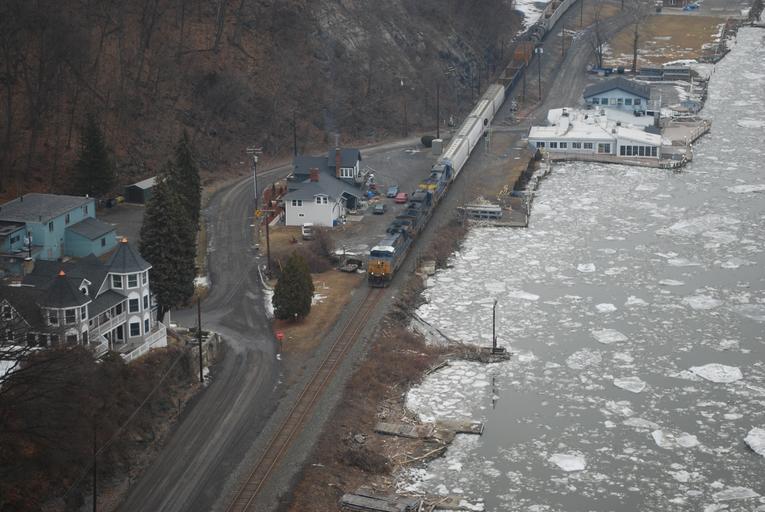 Keywords: Hudson River from walkway in winter 5.JPG Hudson River as seen from the Walkway Over the Hudson a pedestrian bridge spanning the river in winter own Juliancolton 2010-01-17 41 710454 -73 941191 Hudson River from Walkway Over the Hudson Images by Juliancolton Freight trains in New York Frozen Hudson River West Shore Railroad