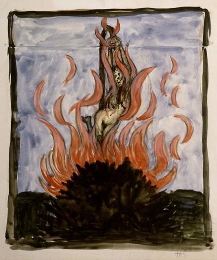 | Keywords: Hugo Simberg - Noita roviolla (ajoittamaton).jpg Artwork Creator Hugo Simberg title Noita roviolla The witch at the stake Häxan på bål watercolor paper cm 24 4 21 Ateneum Art Museum Helsinki Object history 1913 02 01 Ateneum A II 968 43 HS ~ lower right signature http //kokoelmat fng fi/wandora/w si A+II+968 3A43 Valtion taidemuseo Other versions PD-old-auto-1923 1917 Hugo Simberg Paintings in the Ateneum Witch trials | ||||