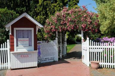 | Keywords: outdoor CC0 waiver: To the extent possible under law, I waive all copyright and related or neighboring rights to this work. CC0 waiver: To the extent possible under law, I waive all copyright and related or neighboring rights to this work.  Hulda Klager Lilac Gardens entrance.jpg  75001847 en Entrance gate to Hulda Klager Lilac Gardens a botanical garden and national historic site in Woodland Washington The sign on the lower left reads 2 Entry Fee - CHILDREN UNDER 12 FREE The sign on the upper left reads GATEKEEPER IS OUT - PLEASE PUT 2 IN BOX INSIDE GATE AT RT The two signs on the right read NO PETS and THE FRAGRANCE IS LOVELY THIS TIME OF YEAR SO SMOKERS PLEASE-LEAVE YOUR BUTTS HERE The sign in the center reads as follows <pre> READ THIS Please <-- This is Eartha Riche our head gardener She is very strong because she works so hard She is also grumpy for the same reason The only time we see her smile is when she catches someone breaking the rules We suspect she uses rule breakers to fertilize the garden but we're afraid to ask She is always lurking in the bushes hoping to catch rule breakers so please read and follow the rules We just hate to lose our guests 1 No running or climbing trees or shrubs No playing in the flower beds This is not a playground 2 Stay on the paths when you can Eartha does not take kindly to trampled plants 3 No smoking or alchohol allowed Eartha will not tolerate either of these 4 Do not pick leaves flowers or branches This REALLY ticks Eartha off 5 No pets no matter how cute or well behaved You don't want to know what Eartha does to pets 6 Be kind to our workers Nearly all are unpaid volunteers Friends or members of the Hulda Klager Lilac Society 7 The gardens are open daily from 10 A M to 4 P M during Lilac Days You had better leave then You don't want to meet Eartha after the gates close Eartha says DON'T MESS WITH HULDA'S GARDEN </pre> Own Dcoetzee 45 53 50 135999 N 122 45 9 15 W alt 23_source exif_heading cc-zero Hulda Klager Lilac Gardens   CC0 waiver: To the extent possible under law, I waive all copyright and related or neighboring rights to this work. |