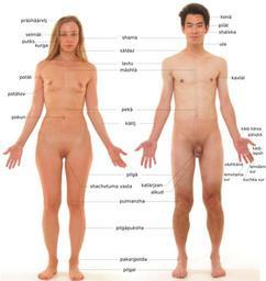 | Keywords: Human anatomy in Moksha.svg en Human male and female - anatomical features pointed out File Anterior view of human female and male without labels jpg 2012-12-21 Mikael Häggström Human body images in different languages cc-zero Personality rights Nude men and women with white background |