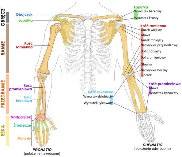 Keywords: Human arm bones diagram PL.svg en The humerus is the upper arm bone It joins with the scapula above at the shoulder joint or glenohumeral joint and with the ulna and radius below at the elbow joint pl Schemat budowy kończyny górnej szkieletu Pokazane różnice między pronatio i supinatio Human arm bones diagram svg LadyofHats Mariana Ruiz Villarreal<br> Translation to English and same improvements Michał Komorniczak 2009-01-22 LadyofHats Other versions/Human arm bones diagram Anatomy of the human arm Skeletal system Medical diagrams in Polish Bones of the human arm
