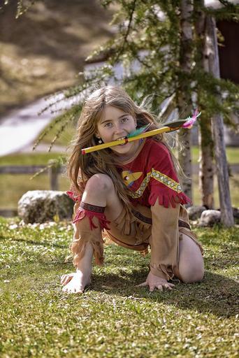Keywords: human child girl blond long hair face view indians indian play out nature portrait