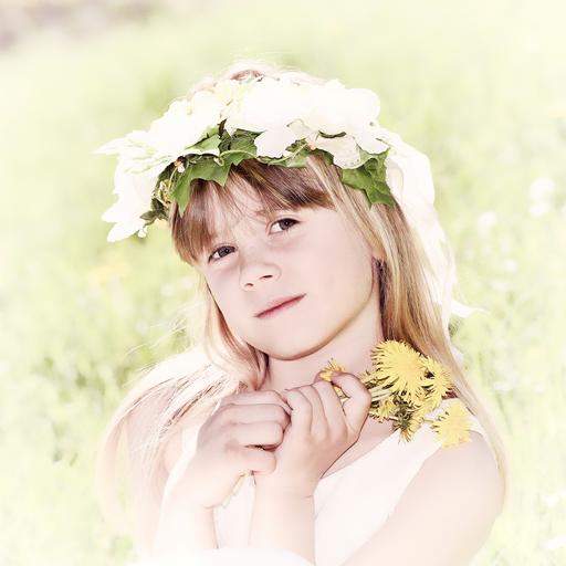 Keywords: human child girl blond face flowers meadow out nature portrait digital painting