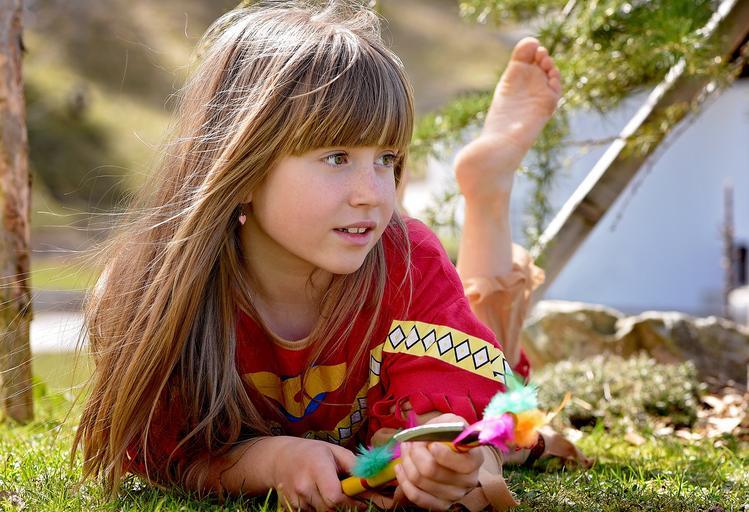Keywords: human child girl face blond long hair indian play relaxed out nature