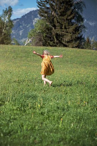Keywords: human person child girl nature meadow landscape run joy of life