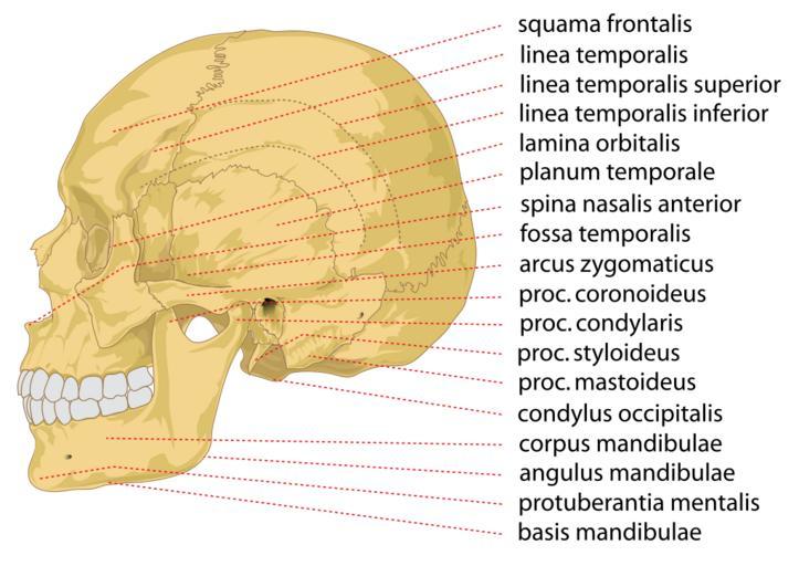 | Keywords: Human skull side details right.svg the adult skull is normally made up of 22 bones Except for the mandible all of the bones of the skull are joined together by sutures semi-rigid articulations formed by bony ossification the presence of Sharpey's fibres permitting a little flexibility Own 2007-01-05 LadyofHats Mariana Ruiz Villarreal <gallery> Image Human skull side details svg Image Human skull side suturas svg Image Human skull side suturas right svg Image Human skull side complete svg Image Human skull side bones svg Image Human skull side details right pl svg Polish version </gallery> LadyofHats SVG files on human skull |