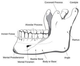 | Keywords: HumanMandibleLeft.svg en Left Side of the Human Mandible with Labels own Djexplo 2011-04-29 Cc-zero Dental diagrams Mandible Human anatomy mandible Coronoid process of the mandible Condyloid process Angle of the mandible Alveolar part of mandible Oblique line of mandible |