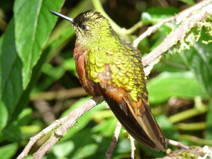 Keywords: hummingbird feathers iridescent green red wing perch cloudforest andes ecuador
