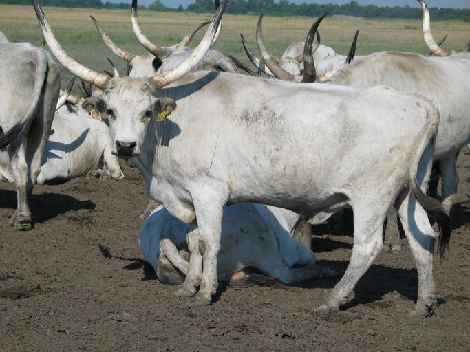 Keywords: Hungarian Grey Cattle14.jpg Hungarian Grey cows in Hortobágy National Park Hungary 2006-07-06 own assumed Nl74 Hungarian Grey cattle Hortobágy National Park