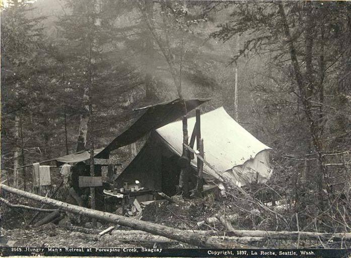 | Keywords: Hungry Man's Retreat restaurant at Porcupine Creek, White Pass Trail, Alaska, 1897 (LAROCHE 55).jpeg check categories 7 June 2016 3 Photograph Creator Frank La Roche Caption on image Hungry Man's Retreat at Porcupine Creek Skaguay Trail c1897 Hungry Man's retreat at Porcupine Creek Skaguay Trail This is a restaurant in the wilderness where you pay a dollar a meal and frequently get something you are not looking for Yet one's appetite is such after these weary marches that anything is eaten with relish particularly if a little fresh meat is included The most prevalent trouble in this part is scurvey which is the result of a scarcity of vegetables and fresh meat A diet of beans salt pork and bad bacon with flour at 50 00 a sack brings trouble; and a restaurant in the wilderness is a very welcome spectable even if one does have to pay a dollar for a four-ounce steak Frank La Roche En Route to the Klondike 1898 Klondike Gold Rush Subjects LCTGM Restaurants--Alaska--Porcupine Creek; Tents--Alaska--Porcupine Creek Subjects LCSH White Pass Trail Alaska ; Trails--Alaska depicted place United States--Alaska--Porcupine Creek 1897 Institution University of Washington UWASH-LAROCHE-source accession number laroche 55 PD-old-auto-1923 1936 Information field Order Number LAR221 Images from the Frank La Roche Photographs Collection to check Restaurants in Alaska Tents Trails |