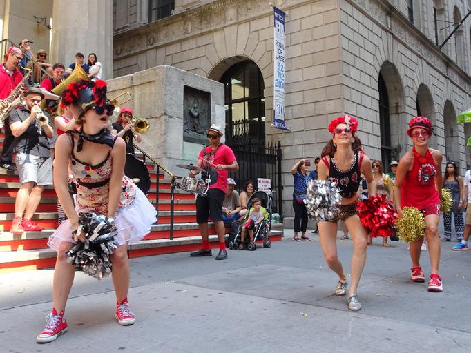 Keywords: Hungry March Band Wall St 01 jeh.jpg en Looking east at Hungry March Band on steps of Federal Hall 2016-08-13 14 08 34 own Jim henderson other versions 40 42 25 3 N 74 0 37 7 W heading E cc-zero Hungry March Band Federal Hall