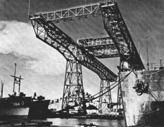 Keywords: Hunters Point Navy Yard crane in 1947.jpg View of the then new crane at the San Francisco Naval Shipyard wich had a lift capacity of 450 tons This was the largest crane in the world at that time To the left is the bow of the attack transport USS Sandoval APA-194 http //www navy mil/ah_online/department_arch html U S Navy All Hands magazine http //www navy mil/ah_online/archpdf/ah194707 pdf July 1947 p 22 1947 U S Navy PD-USGov-Military-Navy San Francisco Naval Shipyard Cranes in the United States |