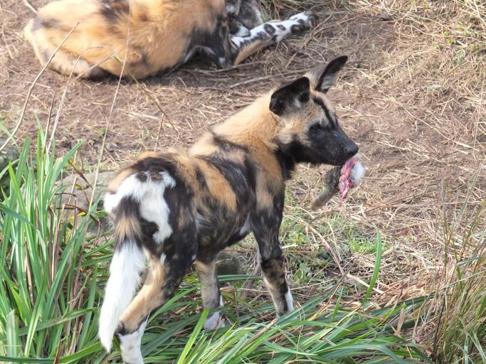 Keywords: hunting dog african wild dog animal carnivore cub zoo feeding