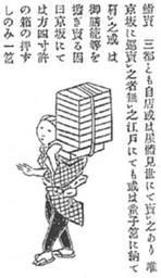 Keywords: Huriuri-2.jpg A picture of sushi seller at japanese edo period written by 田 守貞 Morisada Kitagawa Title of a book 守貞漫稿 morisada-mankou 元画像は国立国会図書館デジタルライブラリー内 1837 yujiyosi PD-Japan Check categories 2009 May 1 ja wikipedia 振売 2 Cuisine of Japan Edo period Sushi in art |