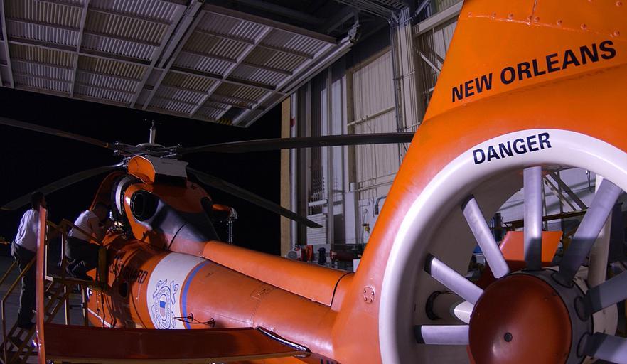 | Keywords: HURRICANE KATRINA DVIDS1078259.jpg en BELLE CHASSE La Sept 3 2005 - Coast Guard Petty Officers Roberto Lopez left and Chris Fowler both from Air Station New Orleans work throughout the night to locate and repair a suspected short in the electrical system of a HH-65 Dolphin helicopter The Coast Guard worked 24 hours a day to conduct rescues and deliver food and water to stranded flood victims affected by Hurricane Katrina More than 12 500 lives were saved by air resources At the height of rescue operations the Coast Guard had at least 62 aircraft 30 cutters and 111 small boats assisting in rescue and recovery operations Approximately one-third of the Coast Guard s entire air fleet was deployed to the region to support rescue operations in the immediate aftermath of the storm U S Coast Guard photo by Petty Officer 3rd Class Luke Pinneo 2005-09-03 Petty Officer 3rd Class Luke Pinneo https //www dvidshub net/image/1078259 1078259 2013-12-11 17 59 BELLE CHASSE LA US PD-USGov Eurocopter HH-65/MH-65 Dolphin Images from DoD uploaded by Fæ Fenestron |
