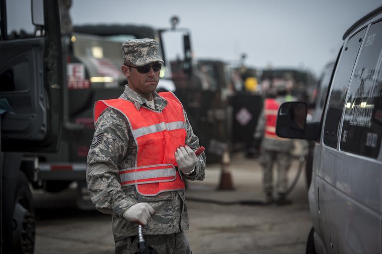 Keywords: Hurricane Sandy relief 121112-N-FA760-160.jpg en Tech Sgt Ben Hritz of 171st Air Refueling Wing from Pittsburgh motions for a van to pull forward before he fills its tanks with gasoline Air National Guardsmen of the 104th Fighter Wing and the 171st Air Refueling Wing are providing gasoline for vehicles essential to maintaining New York City's infrastructure at a fuel supply point on Floyd Bennett Field in Brooklyn N Y The operation has distributed over 280 000 gallons of motor vehicle gasoline and more than 78 000 gallons of diesel fuel to emergency vehicles School buses and tactical military vehicles used for Hurricane Sandy relief efforts Hurricane Sandy was the largest Atlantic hurricane on record and caused the most damage in New York and New Jersey Oct 29 2012 U S Navy photo by Chief Mass Communication Specialist Ryan J Courtade/Released 2012-11-12 Chief Petty Officer Ryan Courtade https //www dvidshub net/image/781723 121112-N-FA760-160 2012-11-13 13 17 BROOKLYN NY US PD-USGov-Military-Navy Floyd Bennett Field Images from DoD uploaded by Fæ |