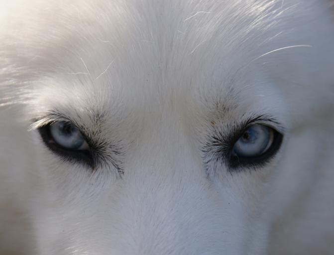 Keywords: husky eyes blue dog siberian doggy arctic polar looking animal pet white fur stare