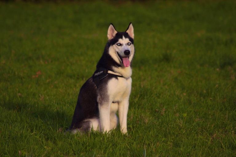 Keywords: husky sitting pet animal dog cute siberian adorable outside outdoor grass