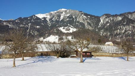 Keywords: hut snow mountain wintry cold sun snowy trees sunny nature dream day sky landscape