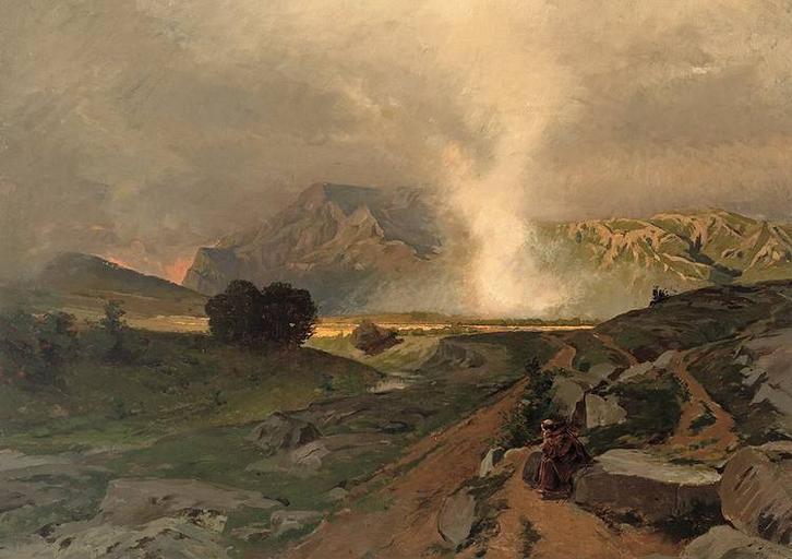 Keywords: Huthsteiner Gebirgslandschaft 1888.jpg Romantische Gebirgslandschaft bei abziehendem Gewitter Öl auf Leinwand 90 x 125 cm http //www zeller de/ 1888 Rudolf Huthsteiner 1844 “1935 PD-art 1888 paintings Mountains in art Storms in art Rudolf Huthsteiner Images from Auktionshaus Zeller |