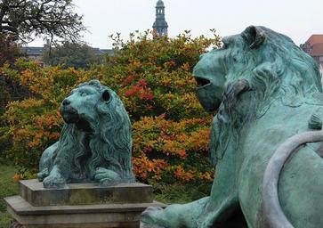 Keywords: Hvilende loever.JPG Hvilende løver foran Rosenborg Slot Kongens Have København own 2010-09 Orf3us cc-zero To hvilende løver Kongens Have