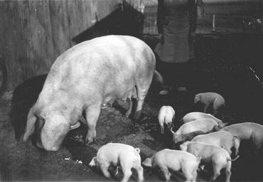 Keywords: Hvn-022.jpg nl Zeug met biggen Foto beschikbaar gesteld door Harrie van Neerven Halvemaanweg own Harrie van Neerven Halvemaanweg info Pieter K circa 1960 Zeilberg Sus scrofa domesticus