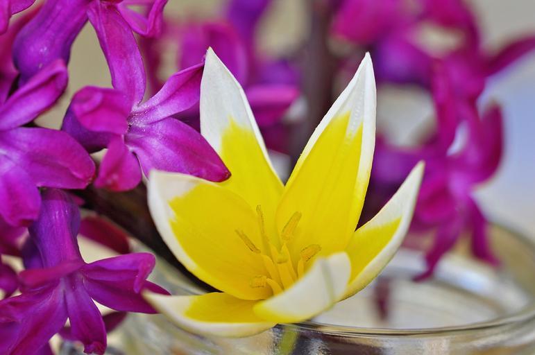 Keywords: hyacinth flower spring flower fragrant flowers small star tulip yellow-white plant glass close