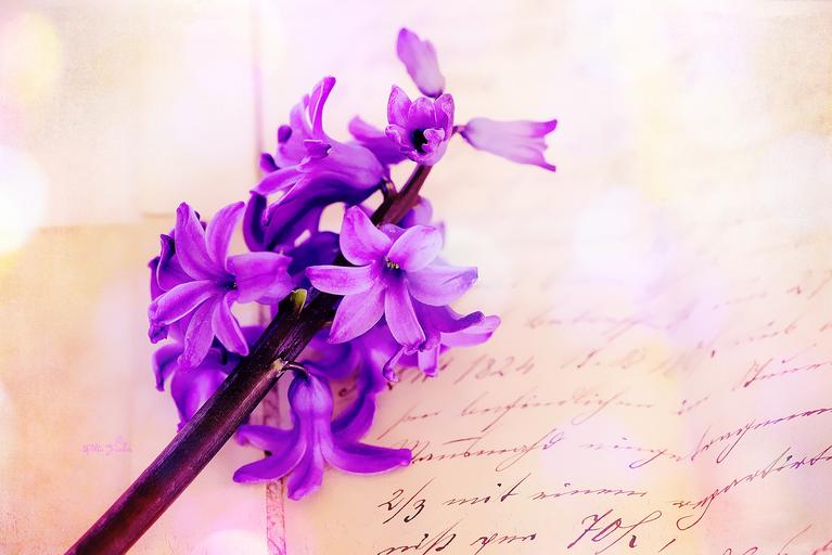 Keywords: hyacinth pink flower flowers plant fragrant flower fragrant spring flower letters handwriting font close painting digital painting