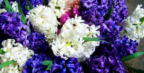 Keywords: hyacinths mixed colors blue and white spring