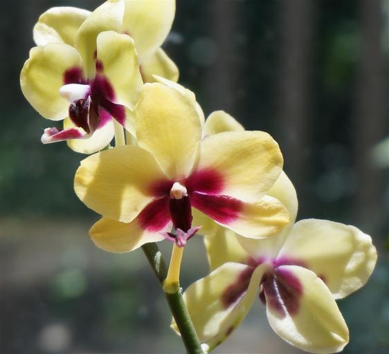 Keywords: hybrid phalaenopsis phalaenopsis orchid yellow red pot plant plant tropical flower floral blossom bloom nature