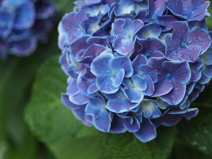 Keywords: hydrangea drop of water rain rainy season flowers plant blue flowers