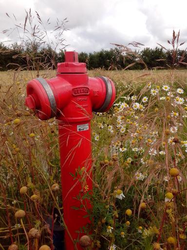 MAKE A MEME View Large Image hydrants field flowers water nature red