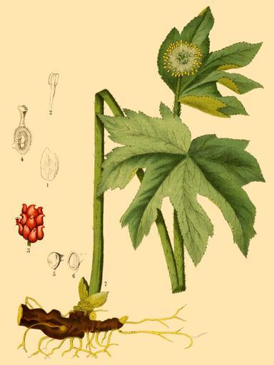 | Keywords: Hydrastis canadensis - American Medicinal Plants 1887.png en Hydrastis canadensis - goldenseal 1887 American Medicinal Plants; an Illustrated and Descriptive Guide to the American Plants Used as Homeopathic Remedies their history preparation chemistry and physiological effects Charles F Millspaugh M D author and illustrator 1887 other versions PD-old-70-1923 Uploaded with UploadWizard Hydrastis canadensis - botanical illustrations | ||||