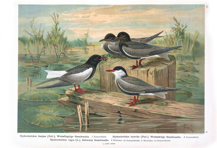 | Keywords: Hydrochelidon - Naumann - Naturgeschichte der Vögel Mitteleuropas.jpg 1 Weißflügelige Seeschwalbe Hydrochelidon fissipes Pall Sommerkleid 2 Weissbärtige Seeschwalbe Hydrochelidon hybrida Pall Schwarze Seeschwalbe Hydrochelidon nigra 3 Weibchen im Sommerkleid 4 Männchen im Sommerkleid https //archive org/stream/Naumann11Naum page/8/mode/1up Naumann Naturgeschichte der Vögel Mitteleuropas XI Band 1905 creator John Gerrard Keulemans File Whitewingblacktern JPG File Whiskeredtern65 jpg NAUMANN Chlidonias leucopterus |