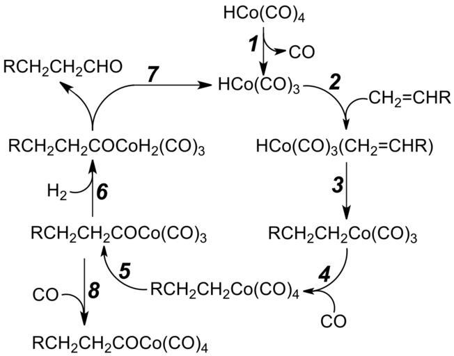 Keywords: Hydroformylation Mechanism V.1.svg en Hydroformylation_Mechanism de Mechanismus der Hydroformylierung own Jü 2012-08-22 Reaction mechanisms Cc-zero