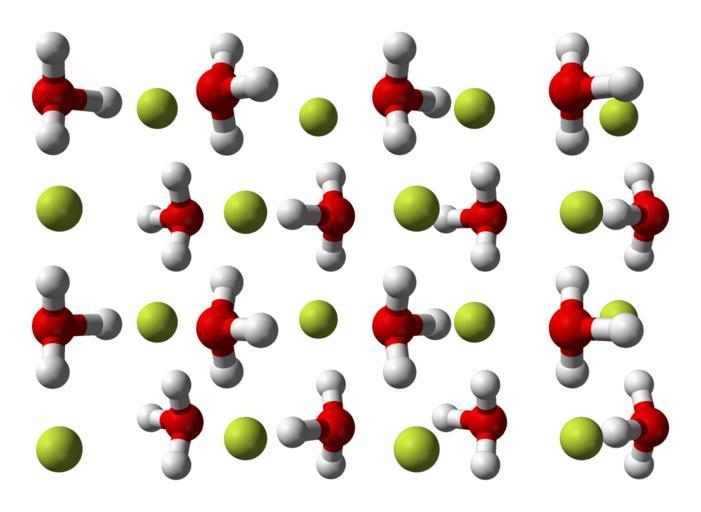 Keywords: Hydrogen-fluoride-monohydrate-xtal-A-3D-balls.png Ball-and-stick model of part of the crystal structure of hydrogen fluoride hydrate HF·H<sub>2</sub>O which exists as hydronium fluoride H<sub>3</sub>O<sup>+</sup>F<sup> ˆ’</sup> Own 2008-05-14 Ben Mills Benjah-bmm27 Images by Ben Mills Hydrogen fluoride Crystal structures of fluorides |