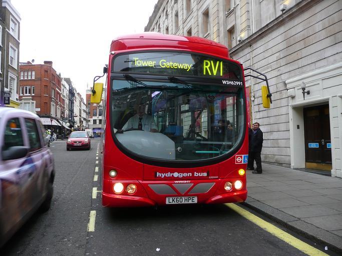 Keywords: HyFLEETCUTE-HydrogenBus-London7.JPG First London bus WSH62991 reg LK60 HPE a 2010 single-deck fuel cell bus based on a VDL SB200 chassis and Wrightbus Pulsar 2 body Operating London Buses route RV1 it is pictured standing at the terminus in Covent Garden facing south Stop C in Catherine Street just off Aldwych It is part of the Transport for London / HyFLEET CUTE project own Spsmiler 2011-01-26 WSH class London buses on route RV1 Buses in the City of Westminster Buses in the United Kingdom photographed in January 2011 |