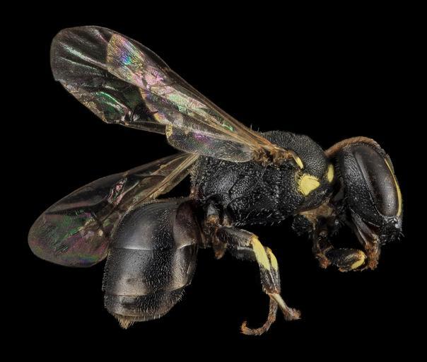 | Keywords: bug bugs bee bees pollinator pollinators animal animals animalia arthropod arthropods arthropoda insect insects insecta hymenoptera aculeata anthophila apoidea colletidae yellow-masked bee yellowmaskedbee yellow-masked bees yellowmaskedbees hylaeus hylaeus floridanus hylaeusfloridanus taxonomy:binomial=hylaeus floridanus taxonomy:binomial=hylaeusfloridanus usgsbiml black background macro In rough translation this would be the "Florida Masked Bee." Tiny, grain of rice things, and usually mistaken for wasps as they carry their pollen internally rather than in their body hairs like other bees. Thus they have reverted to the wasp shape from whence bees came. This is a rare species collected by Heather Campbell as part of her survey of a sandhill area of North Carolina. Photo by Wayne Boo Canon Mark II 5D, Zerene Stacker, 65mm Canon MP-E 1-5X macro lens, Twin Macro Flash, F5.0, ISO 100, Shutter Speed 200, link to a .pdf of our set up is located in our profile In rough translation this would be the "Florida Masked Bee." Tiny, grain of rice things, and usually mistaken for wasps as they carry their pollen internally rather than in their body hairs like other bees. Thus they have reverted to the wasp shape from whence bees came. This is a rare species collected by Heather Campbell as part of her survey of a sandhill area of North Carolina. Photo by Wayne Boo Canon Mark II 5D, Zerene Stacker, 65mm Canon MP-E 1-5X macro lens, Twin Macro Flash, F5.0, ISO 100, Shutter Speed 200, link to a .pdf of our set up is located in our profile |