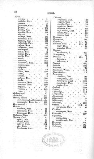 Keywords: HymenopteraBritannicaBraconidaeBrittanicaPage28.jpg en Haliday A H 1839 Hymenoptera Britannica Oxyura et Alysia London Balliére Fasc 1 15 Fasc 2 28 et 4 Hymenoptera Britannica Scan A H Haliday 1839 Hymenoptera Britannica Oxyura et Alysia PD-old-100 |