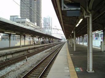 Keywords: Hyogo-Sta Home.JPG en Platform of Hyogo Station Photograpy Nozomikobe ja 兵庫駅のホーム 撮影 Nozomikobe Hyogo Station