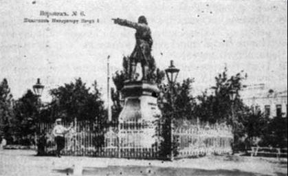 Keywords: Памятник Петру I (до 1917 года).JPG ru Отк ытка до 1917 года http //vrn-histpage ru/faces/post17cat html Сайт Лики Во онежа Author PD-old Monument to Peter I in Voronezh
