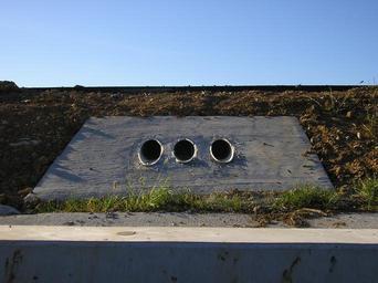 Keywords: i-69 i69 interstate 69 interstate69 indiana road interstate construction bridge overpass freeway infrastructure monroe county monroecounty crider & crider cridercrider drainage drainage outlet drainageoutlet pvc piping pvcpiping piping Near Bolin Lane in Monroe County, Indiana, a tri-tube drainage outlet for Interstate 69; looking west. The PVC piping, embedded under the road, allows water to drain from the subbase of the interstate. Inserted in each tube (but not visible) is an wire mesh animal guard. Crider & Crider, prime contractor (Indiana I-69 Project, Section 4, Segment 9). Near Bolin Lane in Monroe County, Indiana, a tri-tube drainage outlet for Interstate 69; looking west. The PVC piping, embedded under the road, allows water to drain from the subbase of the interstate. Inserted in each tube (but not visible) is an wire mesh animal guard. Crider & Crider, prime contractor (Indiana I-69 Project, Section 4, Segment 9). |