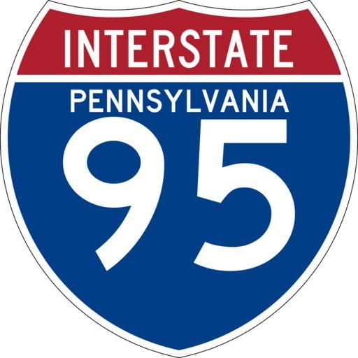 | Keywords: I-95 (PA).svg en 600 mm by 600 mm 24 in by 24 in Interstate shield made to the specifications of the http //mutcd fhwa dot gov/SHSm/Guide pdf 2004 edition of Standard Highway Signs sign M1-1 Uses the http //www triskele com/fonts/index html Roadgeek 2005 fonts United States law does not permit the copyrighting of typeface designs and the fonts are meant to be copies of a U S Government-produced work anyway Colors are from http //mutcd fhwa dot gov/kno-colorspec htm Pantone Red 187 and Blue 294 converted to RGB by http //www reeddesign co uk/test/pantone2rgb html The outside border has a width of 1 1 mm and a color of black so it shows up; in reality signs have no outside border Own Fredddie 2008-09-01 Interstate Highway shields with name of state 95 Pennsylvania |