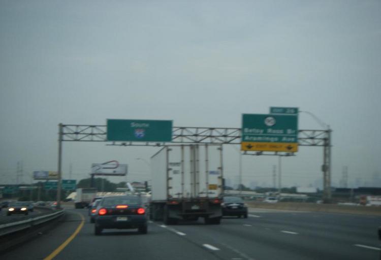 | Keywords: I-95 SB at Betsy Ross Bridge-Aramingo Avenue exit 2.JPG Southbound Interstate 95 at the exit for Betsy Ross Bridge/Aramingo Avenue exit 26 which provides access to New Jersey Route 90 in Philadelphia Pennsylvania Own 2008-07-23 Dough4872 Interstate 95 in Philadelphia Pennsylvania |