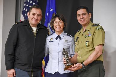 | Keywords: groupshot people indoor COLORADO SPRINGS, Colo. -- Inter-American Defense College Class 56 visits Colorado Springs for the second and final leg of their annual academic trip across the United States Dec. 14-16, 2016. Upon arrival, the group visited the Garden of the Gods, a trove of natural rock formations, and received academically relevant mission briefing from Northern Aerospace Defense Command (NORAD)/U.S. Northern Command and U.S. Air Force Space Command. The students also partook in a pandemic disease crisis response exercise. COLORADO SPRINGS, Colo. -- Inter-American Defense College Class 56 visits Colorado Springs for the second and final leg of their annual academic trip across the United States Dec. 14-16, 2016. Upon arrival, the group visited the Garden of the Gods, a trove of natural rock formations, and received academically relevant mission briefing from Northern Aerospace Defense Command (NORAD)/U.S. Northern Command and U.S. Air Force Space Command. The students also partook in a pandemic disease crisis response exercise. |